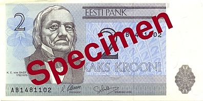 Карл фон Бэр был изображён на банкноте достоинством в две эстонские кроны.