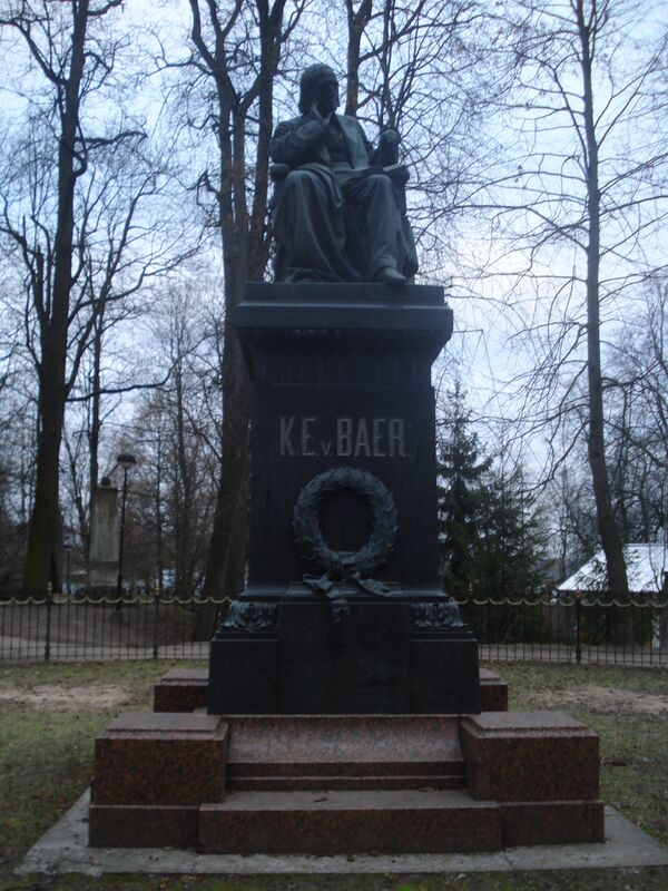 В ноябре 1886 года в Тарту был установлен памятник Бэру работы скульптора А. М. Опекушина. Памятники Бэру (варианты памятника Опекушина) были установлены также у входа в Зоологический музей Зоологического института РАН, в Библиотеке Академии наук (БАН) в Санкт-Петербурге и бюст в Астрахани на Аллее Славы Земли Астраханской.