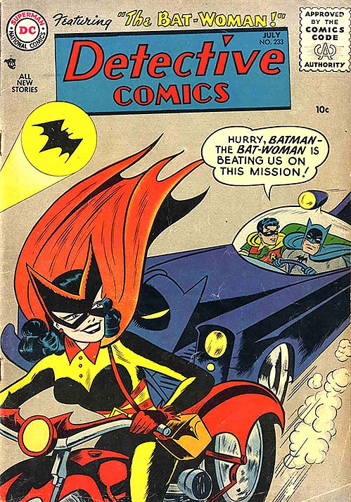 Кэти Кейн в основном ассоциируется с серебряным веком комиксов. Она была одним из первых членов Бэт-семьи. После того, как семейная фишка получила успех в комиксах о Супермене, редактор комиксов о Бэтмене Джек Скифф, предложил Бобу Кейну создать одного для Бэтмена. Для воплощения этой идеи первой была выбрана женщина, чтобы погасить подозрения в гомосексуальности Бэтмена и первого Робина, Дика Грейсона. Кети Кейн и её альтер эго Бэтвумен впервые появились в 233 номере Детективных Комиксов (июль 1956). В своём первом появлении Бэтвумен была представлена как женский аналог Бэтмена в борьбе против преступности. У неё была своя бэт-пещера и стереотипно-феминное оружие такое как губная помада, пудра, браслеты и сетка для волос. Бэтвумен регулярно появлялась на страницах Бэтмена и Детективных Комиксах вплоть до ранних шестидесятых годов. Хотя фанатские письма и указывали на то, что Бэтвумен полюбилась им, редактор Джулиус Шварц решил, что она и другие связанные с Бэтменом персонажи будут неуместны в его новом видении персонажа Бэтмена и направлении в котором он решил развивать Бэт-вселенную.