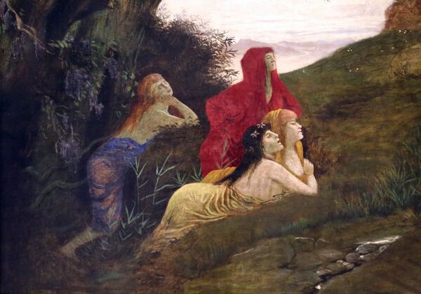 В 1860—1862 годах Арнольд Бёклин при поддержке графа Адольфа Фридриха фон Шака преподавал в качестве профессора Саксонской Велико-герцогской школы искусств в Веймаре. В 1861 году он был в Риме и посетил Неаполь и Помпеи. В 1866 году Бёклин вернулся в Базель из Рима. В 1868 году Якоб Буркхардт поручил ему оформить садовую комнату в своем доме в Базеле фресками.