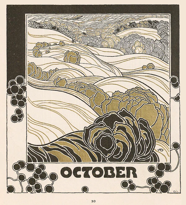 - «Осенний пейзаж в венском лесу», стеклянная мозаика на вилле Отто Вагнера, 1899 год.