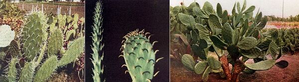 Он давал урожай от 150 до 300 тонн зелёной массы с одного акра (акр — 4047 м²). Ткани кактуса содержали более 90 % воды, сахар и полезные минеральные вещества. Многие полезные свойства новых и хозяйственно ценных в пустынной местности кактусов были утеряны, не передаваясь по наследству[36].
