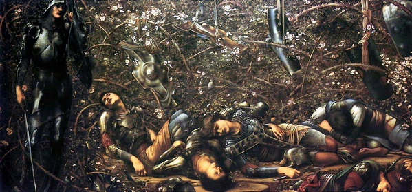 В двадцатидвухлетнем возрасте Бёрн-Джонс открыл для себя «Смерть Артура» Томаса Мэлори, и до конца своей жизни он создавал полотна, посвящённые этим легендам. Красота и таинственность древних преданий пленили Бёрн-Джонса ещё и потому, что это были христианские предания, построенные на тематике битвы добра и зла, греха и спасения. Как многие другие современники, которые потеряли свою веру в Бога, Бёрн-Джонс сохранил веру в христианские добродетели, романтическую любовь, благородство. За два года до смерти он писал: «Поразительно, но эта история о Святом Граале всегда была в моих мыслях… Есть ли в мире что-нибудь столь же прекрасное?»