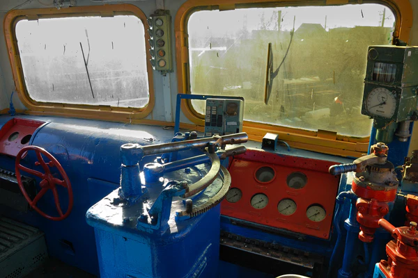 Спереди кабина имеет два лобовых окна со сплошным остеклением и стеклоочистителями, ниже которых в передней её части установлены пульты управления машиниста и помощника, напротив которых установлены кресла. По бокам от рабочих мест с обеих сторон имеются двухсекционные окна: передняя секция неподвижная, а задняя может сдвигаться вперёд, открывая форточку[7]. По бокам от задней стенки кабины расположены две узких ниши, напротив которых сбоку находятся входные двери, расположенные сзади за боковыми окнами. В одной из ниш в зависимости от кабины сзади имеется открывающаяся поворотом в кабину дверь машинного отделения — у первой кабины она расположена справа за местом машиниста, а у второй — слева за местом помощника[4].