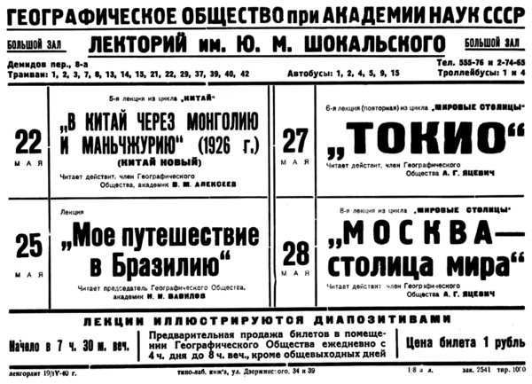 В 1931 году Вавилов возглавил Всесоюзное географическое общество и оставался в должности его президента до 1940 года.