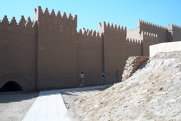 - «Большая стена» Вавилона (шум. BÀD.GAL.KÁ.DIG̃IR.RAki). Датировочные формулы первого царя I династии, Сумуабума, упоминают о возведении им «Большой»/«Великой» (шум. GAL) стены вокруг Вавилона уже в первый год его правления (около 1894 года до н. э. согласно средней хронологии). Спустя 18 лет эта же стена была завершена или перестроена Сумулаэлем. По мнению исследователей, «Большая стена» должна была охватывать древнейшее ядро города — кварталы Эриду, Кумар и часть Куллаба[61]; план этого сооружения мог приближаться к овальному[62].