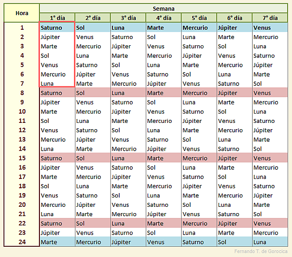 Дополнительным аргументом в пользу существования недели в Вавилонии выступает астрология. Количество дней недели соответствует 7 видимым с Земли невооружённым глазом «планетам». Именно это число планет было известно вавилонянам (халдейский ряд), и как раз вавилоняне создали обычай называть дни недели в честь планет. Данный обычай возник благодаря тому, что астрологи посвящали каждый час в сутках какой-то планете. Счёт вёлся с первого часа субботы, который находился под управлением планеты Сатурн, поэтому суббота получила название «дня Сатурна». Второй час субботы посвящался Юпитеру, третий — Марсу и т. д. Первый час воскресенья выпадал на Солнце, первый час третьего дня — на Луну, четвёртого — на Марс, пятого — на Меркурий, шестого — на Юпитер, седьмого — на Венеру[18][22][23].