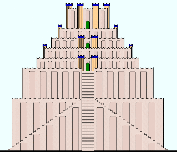 Сама же башня разрушалась и реконструировалась несколько раз[9]. Только после последней и самой крупной реконструкции[когда?] фундамент башни достиг ширины 90 м при такой же высоте сооружения. Подсчёты позволяют говорить о том, что для возведения этой башни было использовано около 85 млн кирпичей. Монументальная лестница вела к верхней платформе башни, где устремлялся в небо двухэтажный храм. Башня была частью храмового комплекса, располагавшегося на берегах реки Евфрат. Найденные археологами глиняные таблички с надписями позволяют утверждать, что каждая секция башни имела своё особое значение; те же таблички дают информацию о религиозных ритуалах, отправлявшихся в данном храме.