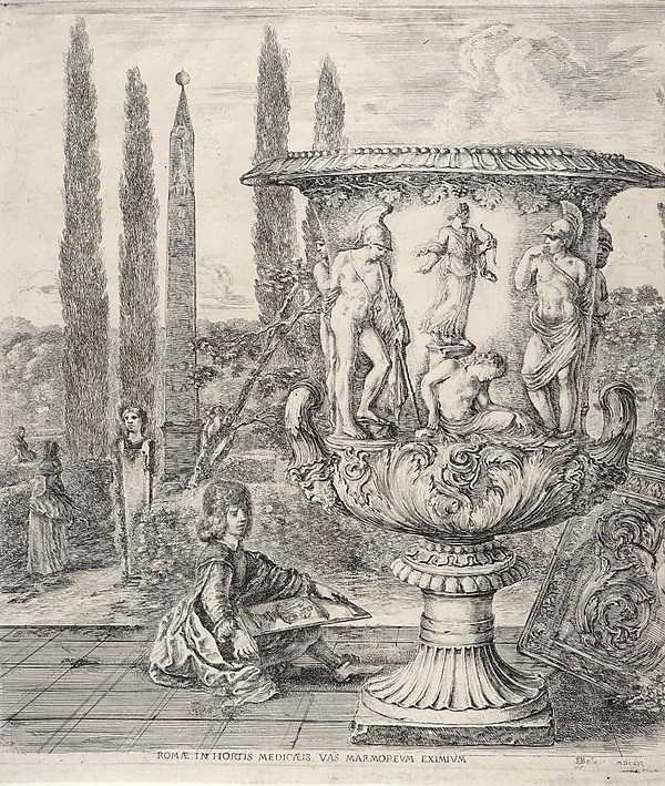С 1598 года ваза (правильнее: вазон) находилась в коллекции виллы Медичи в Риме. Кардинал Фердинандо Медичи приказал сделать несколько копий этой вазы для украшения сада своей виллы. С 1780 года — в собрании галереи Уффици во Флоренции.