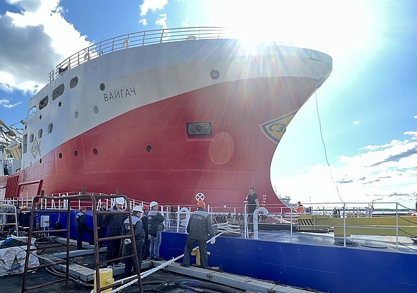 Так называемой крёстной матерью «Вайгача» при спуске на воду стала заместитель директора по экономике Северо-Западного рыбопромышленного консорциума Мария Шалыгина, она и разбила о борт бутылку шампанского[6].