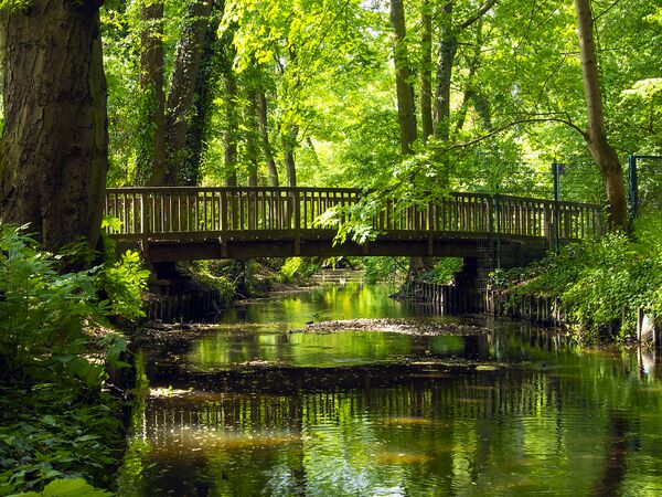 С севера естественной границей Вайдманслуста являются проточное озеро Хермсдорфер-Зе и Тегелер-Флиз, который при общей длине более 30 км по традиции называется ручьем. На юго-западе расположен Штайнберг-парка на юго-востоке стадион футбольного клуба Любарс. Насчитывающая уже более 100 лет церковь Королевы Луизы с ее 42-метровой башней и фасадом, по настоянию императора Вильгельма II выполненным в стиле ратуши Тангермюнде[12], по-прежнему остается одной из визитных карточек района.