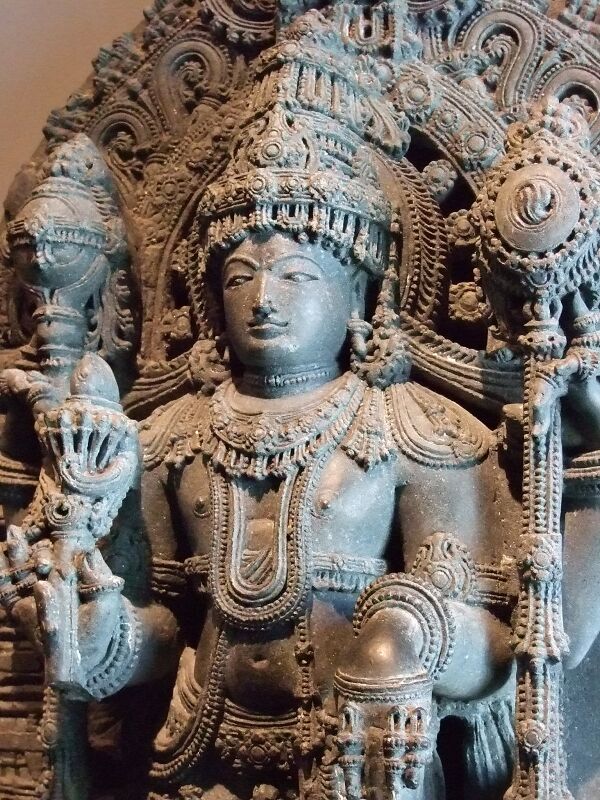 На прекрасной Вайкунтхе, сияющей как тысячи солнц, обитает Шри Пара-Васудева, воплощение чистого знания, совершенный, исполненный шуддха-сатвы, с шестью гунами — гнана, бала, айшварья, вирья, шакти и теджас. Господин нитья-сури держит раковину и чакру, он сияет в прекрасных одеждах и украшениях, ему служат Шри, Бху и Нила, вместе счастливо отдыхающие на Ананте…Молитва Надури Аммала (1165—1275), ачарьи шри-вайшавизма и внука сына младшей сестры Рамануджи[13]