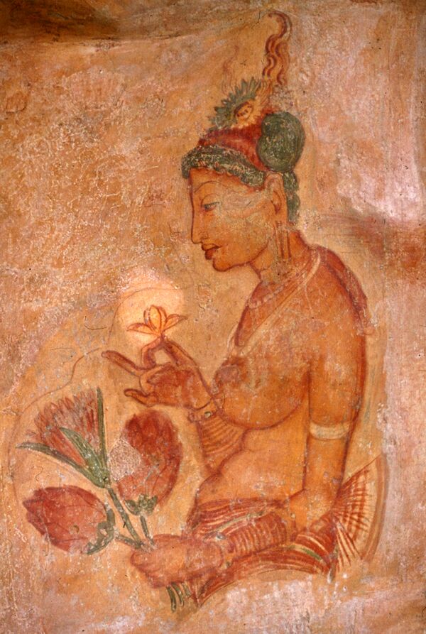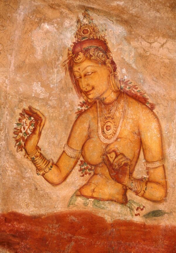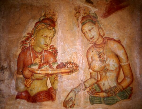 Традиционное представление о жизни небесного мира. Фрески Сигирии. Шри-Ланка, между VIII и X веками.