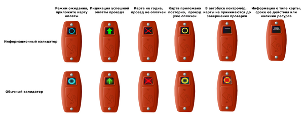 Информационные валидаторы имеют дисплей (изготовленный по технологии Органический светодиод), который, помимо индикации событий, аналогичных простому валидатору, может выводить информацию об электронном проездном билете (срок действия, ресурс поездок или баланс в зависимости от типа ЭПБ). Для получения такой информации необходимо сначала оплатить проезд, а затем снова приложить билет к информационному валидатору. Валидатор покажет, что билет приложен повторно, и через некоторое время отобразит информацию о ресурсе электронного проездного билета.