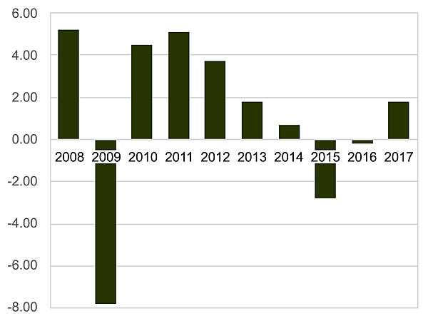 В первой половине 2014 года в российской экономике наблюдалась стагнация[37]. Замедление темпов роста, наблюдавшееся уже с середины 2012 года, первоначально, по оценке Минэкономразвития, было связано с инвестиционной паузой, вызванной разрастанием долгового кризиса в еврозоне. По мере замедления экономического роста, однако, всё более отчетливо стали проявляться структурные проблемы, обусловленные опережающим ростом издержек, прежде всего, связанных с трудовыми ресурсами. Вследствие этого происходило сокращение доли валовой прибыли в структуре ВВП и, как результат, уменьшение ресурсов для инвестиционного роста. В итоге инвестиционная пауза затянулась, а в 2014 году к этому добавились новые факторы ограничения экономического роста. Эскалация конфликта на Украине (2014), введение экономических санкций в отношении России и падение цен на нефть с середины того же года привели к росту неопределённости, сокращению доходов и резкому ухудшению бизнес-уверенности.