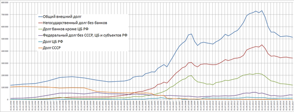 Наиболее существенное негативное влияние на состояние российской экономики оказывают западные санкции, связанные с ограничениями на привлечение финансовых ресурсов. Они затрудняют предприятиям и банкам доступ на внешний долговой рынок, не позволяя полностью рефинансировать внешний долг[36].