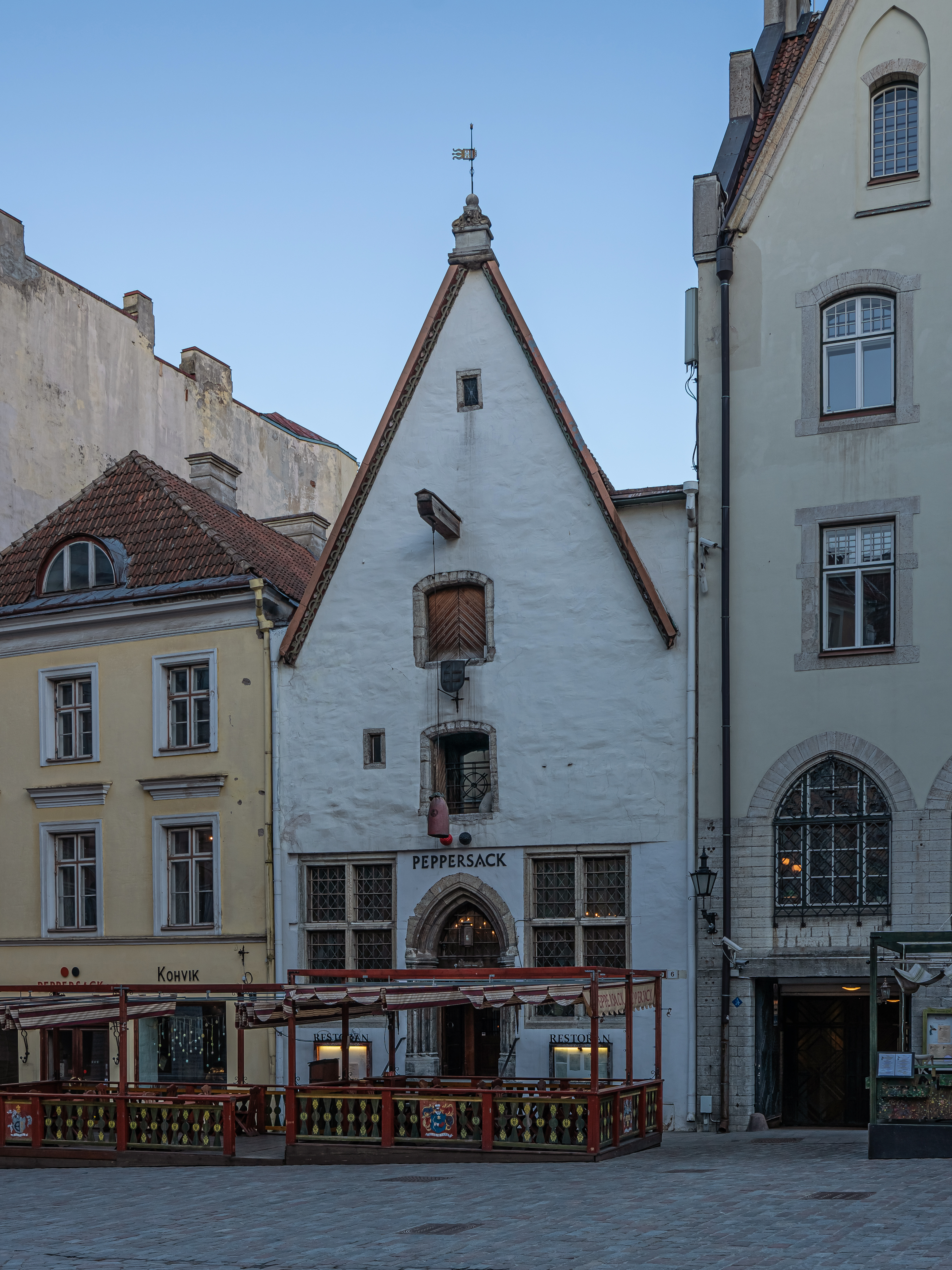 | Viru tn, 2 | Ресторан Peppersack — средневековый дом. Построен в 1434 году на месте более старого деревянного и имеет вид обычный для купеческих домов готической эпохи. | |