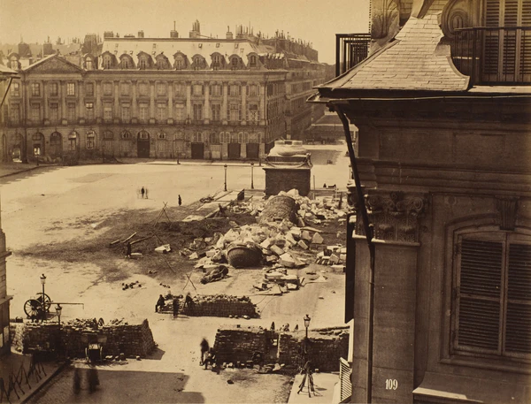 Самые драматические события ждали колонну в дни Парижской коммуны в 1871 году. Известный художник Гюстав Курбе ещё с момента падения Второй империи в сентябре 1870 года высказывался за снос колонны, производящей «впечатление кровавого ручья в мирном саду», и за то, чтобы перенести этот памятник на эспланаду Дома инвалидов и установить на пустынном месте, посещаемом главным образом военными. Во время Коммуны Курбе оказался комиссаром по культуре и был близок к осуществлению своей мечты. Но общественное мнение Парижа требовало полного уничтожения колонны.