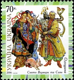 Среди населения западных губерний Российской империи существовало поверье, будто «Микола сам-третей ходит по земле», то есть вместе с Варварой и Саввой[23]. В Полесье связывали в единый цикл дни Варвары, Саввы и Николы: «Сава — это батька Николая, а Варвара — это матка Николая. Он сказаў: "Не празнуйте меня! Празнуйте мать и отца!"». В этот день полесские хозяйки варили вареники, а пастухи собирали продукты, обходя дома[24].