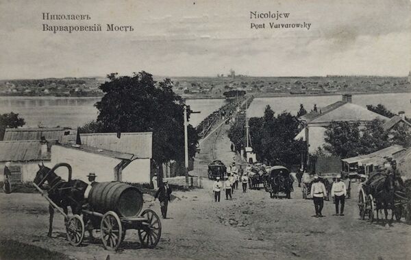 Впервые наплавной мост через Южный Буг в Николаеве был построен в 1827 году. Данные о нём, по всей видимости, не сохранились. Взамен него в 1856 году был построен новый мост, просуществовавший до Великой Отечественной войны. Его наплавная часть состояла из еловых брёвен, по которым были уложены прогоны и настил. К берегам примыкали деревянные свайные эстакады. Со стороны левого берега мелкая часть реки пересыпалась земляной дамбой между каменными подпорными стенками. Уровень проезда не превышал одного метра над водой. Наплавная часть моста крепилась цепями сечением от 22 до 50 миллиметров к якорям. Длина моста составляла около 1 километра, ширина проезжей части — 6,25 метра.