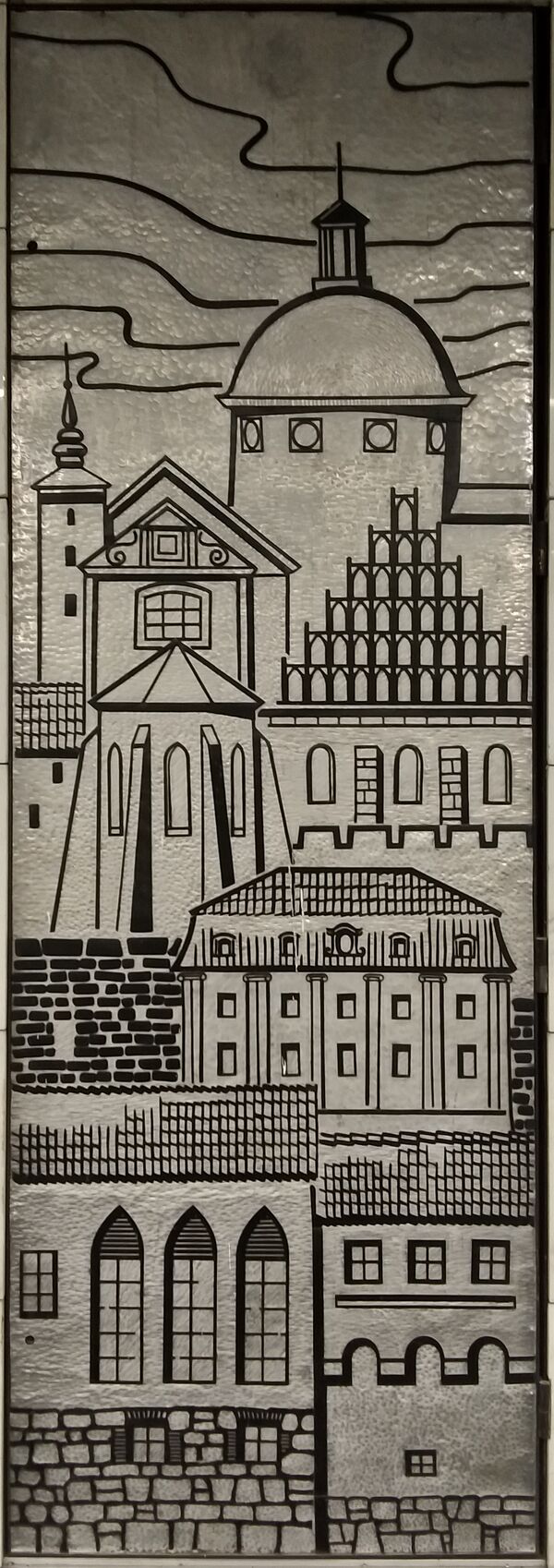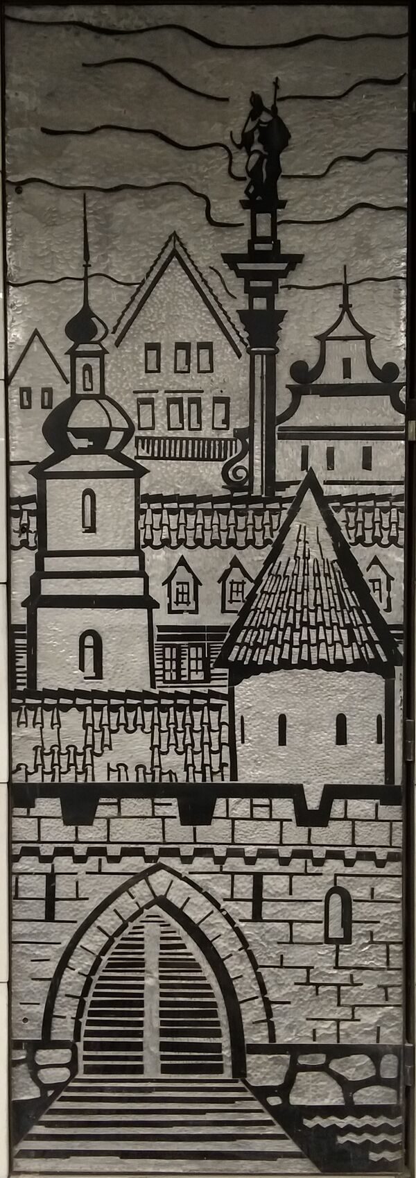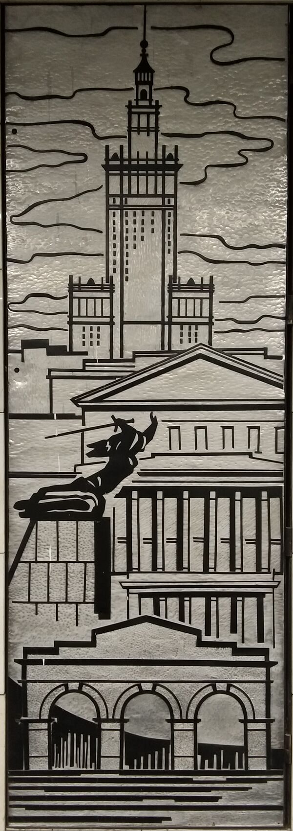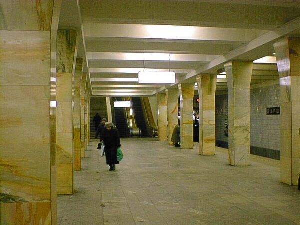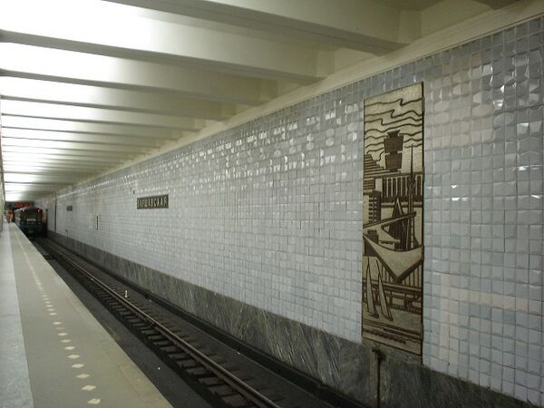 Путевые стены были отделаны белой с голубым отливом керамической плиткой, а также коваными изображениями Варшавы. Авторами всех изображений были выбраны крупнейшие латвийские художники: Х. М. Рысин, А. Я. Лапинь и Д. Я. Бодниек. Четырёхугольные, расширяющиеся кверху колонны были облицованы серо-жёлтым мрамором с голубыми вкраплениями. Пол был покрыт серым гранитом. Светильники были скрыты в ребристом кессонированном потолке. В 2019 году в рамках работ по реконструкции Каховской линии и её будущему включению в состав Большой кольцевой линии началась работа по замене всей отделки станции.