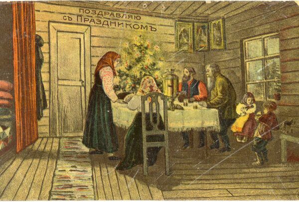 В некоторых местах было обыкновение накануне ходить по домам (колядовать, щедровать) и собирать пироги, свиные ноги и вообще съестные святочные вещи. Крестьяне, совершавшие этот обход, приговаривали под окнами домов: «Свинку да боровка выдай для Васильева вечерка», или же: «Кишку да ножки в верхнее окошко». Свиное мясо составляло главное угощение во время Васильева вечера и Рождественских Святок. Посевание же проводили исключительно утром 1 января[15]. Рано утром дети, собравшись вместе, ходили до обедни по домам сеять из рукава, рукавицы или из мешка зерна овса, гречихи, ржи и других хлебов и при этом распевали посевальную песню или приговаривали: «На счастье, на здоровье, на новое лето роди, Боже, жито пшеницю и всякую пашныцю», «Уроди, Боже, всякаго жита по закрому, что по закрому да по великому, а и стало бы жита на весь мир крещеный». Старшая женщина (большуха) старалась поймать разбрасываемое зерно фартуком. Все «засеянное» зерно собиралось и хранилось до посева — его добавляли в первую сеялку. На Васильев день готовили кашу, с особыми обрядами, с гаданием на каше о счастье и благополучии наступающего года для семьи[14].