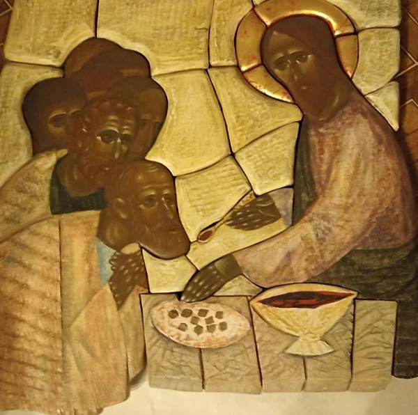 Композиция изображает сцену Евхаристии. Слева показана группа из семи апостолов, справа — одиночная мужская фигура Иисуса Христа. Между ними расположен престол, где и происходит Таинство.