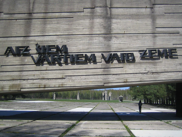 На входе в мемориальный комплекс лагеря в Саласпилсе выбита строка из стихотворения Вевериса: «За этими воротами стонет земля» (латыш. Aiz šiem vārtiem vaid zeme).