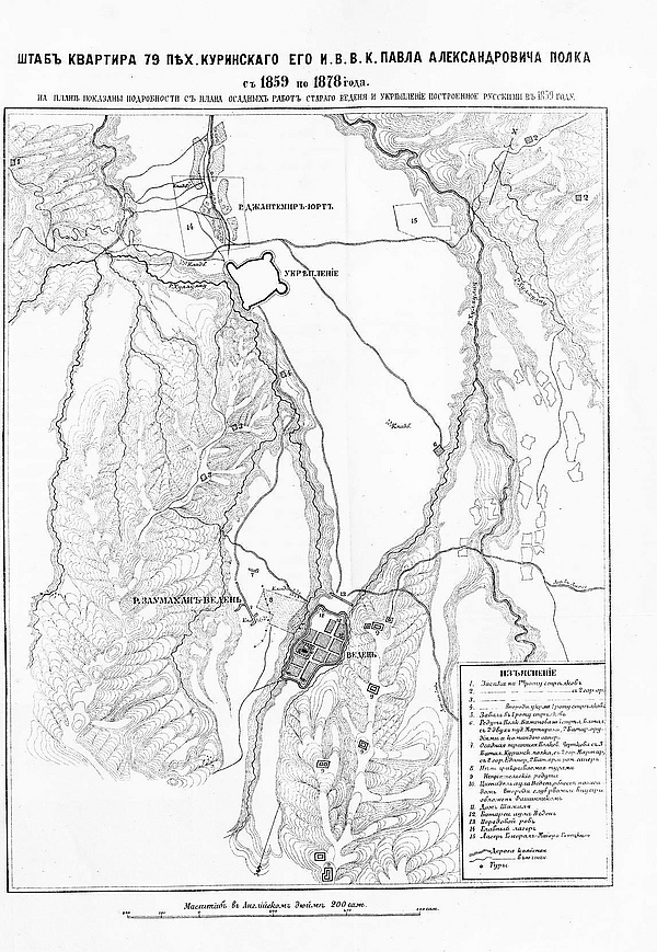 Крепость Новое Дарго (Крепость Шамиля) располагалась выше селения Ведено на ровном плато Дишнийн Ведана, выкупленном летом 1845 года у дишнинцев. 1 апреля 1859 года крепость была взята силами отряда Отдельного Кавказского корпуса Кавказской армии под командованием Н. И. Евдокимова в результате осады и штурма. В марте 1859 года, немного ниже крепости Шамиля было построено царское укрепление Новое Ведено (штаб-квартира Куринского полка), перестроенное позже в каменную крепость Ведено.