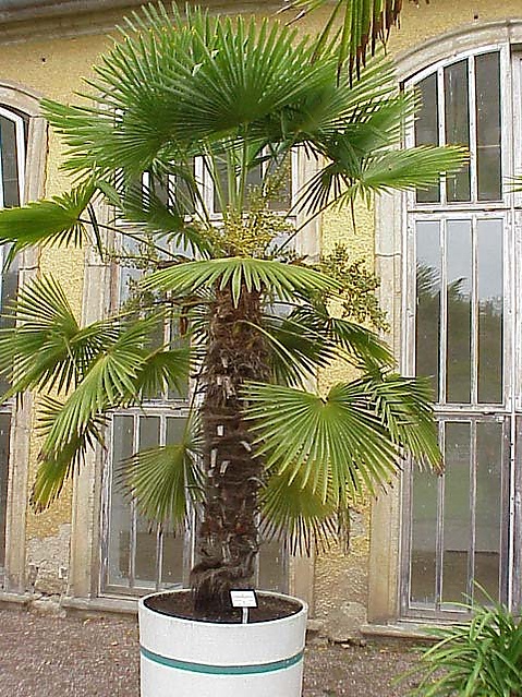 Веерные пальмы — это общее название различных видов пальм, чьи веерообразные, полукруглые листья рассечены на многочисленные листочки, являющимися сегментами одной пластины (одного большого листа). Все сегменты отходят из центра и расходятся лучами, словно являются радиусами одного большого округлого веера. Однодольное растение. Параллельное жилкование листьев.