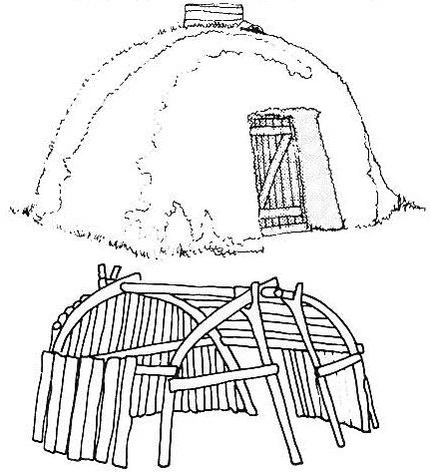 Во время дождей и морозов, после топки рыхпень закрывали брезентом или шкурой[12].Под этим отверстием укладывали очаг из плоского камня (толлсайй – «место огня»). Над ним к поперечной перекладине, дымовой жерди или на специальных приспособлениях из брёвен размещали крюк (аввль), на который подвешивали котел.