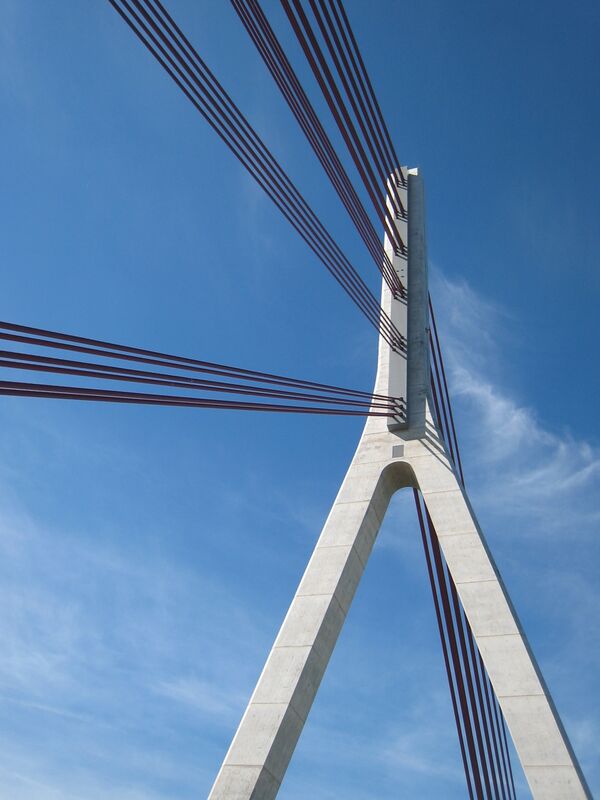 Строительство нового вантового моста по проекту компании «Leonhardt, Andrä und Partner»[1] началось в мае 2005 года. Мост строился параллельно существующему мосту в 10 м ниже по течению. Мост был сдан в эксплуатацию 30 ноября 2009 года на четыре месяца позже запланированного срока. Затраты на строительство составили 44 млн. евро[2].