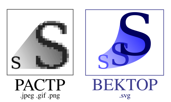 - Спецификации векторных форматов (и, соответственно, рендереры векторной графики) намного сложнее таковых для растровой графики.