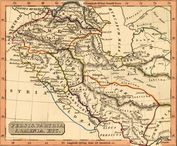 При Тигране II, превратившись в крупнейшую державу[35][36], имела границы от Куры до Иордана и от Средиземного моря до Каспийского[37][17][18].