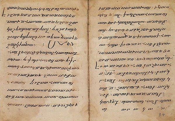 Язык администрации и суда в Великой Армении был арамейский[1], язык общения — армянский[2]. Для фиксации письменных текстов греческим языком и письмом, наравне с арамейским, начинают пользоваться здесь с III века до н. э. Камилла Тревер отмечает, что так как армяне до IV века не имели своего алфавита, им приходилось пользоваться чужим письмом, вначале арамейским, затем греческим и парфянским. На 1953 год до нас дошли три надписи на арамейском, двенадцать на греческом и пять латинских надписей[74]. В некоторых из них встречаются также арменизмы[75]. Джеймс Рассел из Гарвардского университета отмечает, что на протяжении IV века христианское учение в Армении передавалось на сирийском и греческом языках, которые были недоступны для большей части населения, народ продолжал читать свои эпические поэмы и псалмы древним богам на армянском языке. С целью перевода Библии и полной христианизации страны в 406 году, при царе Врамшапухе, ученый и проповедник Маштоц создал армянский алфавит[76].