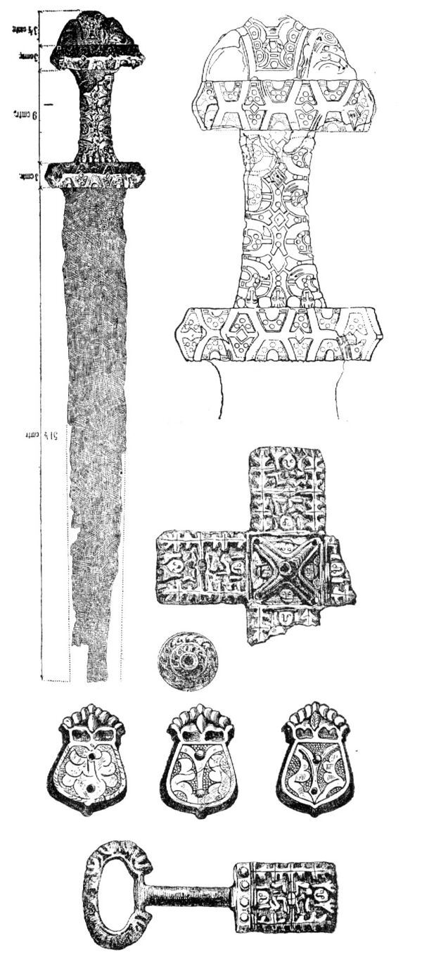 Центральные великоморавские предгородские агломерации-эмпории[29] — Микульчице, Старе-Место близ Угерске-Градиште, Поганьско в Бржецлаве, процветавшие на обслуживании Империи каролингов в IX—X веках, практически мгновенно исчезли после изменения экономической ситуации, вызванного вторж ением венгров в X веке, хотя сами они и не были затронуты боевыми действиями. И. Штефан объяснял запустение агломераций, разрушением инфраструктуры дальней торговли, имевшей жизненное значение для моравской политии[30][31]. По характеру и деталям погребальной обрядности ориентированные на запад древнейшие труположения в Киеве и на Среднем Поднепровье имеют прямые аналогии в раннехристианских памятниках на территории Великой Моравии в Скалице, Старом месте, Микульчице, Поганьско, Стара-Коуржим, Колине и Желенках[32]. С. С. Ширинский, отмечая сходство инвентаря, писал о полной идентичности дружинных могил Киева и Чернигова погребениям в Великой Моравии[33]. Серебряные оковки турьих рогов из Чёрной могилы и оковки рукояти меча из дружинной могилы близ Золотых ворот в Киеве имеют такие же орнаментальные мотивы как на «некоторых поясных бляхах и наконечниках из Микульчиц, Поганьско в Бржецлаве, Старого Места, Желенок и, особенно, на типичных великоморавских украшениях-пуговицах — гомбиках, находки которых сосредоточиваются в области трёх крупных южноморавских центров и далее в Средней Чехии и Юго-Западной Словакии». И моравско-чешские, и древнерусские группы находок этого стиля возникли на основе одинакового причерноморского и иранского происхождения, которое нашло отражение в орнаментации золотых сосудов из Надьсентмиклошского клада[34].