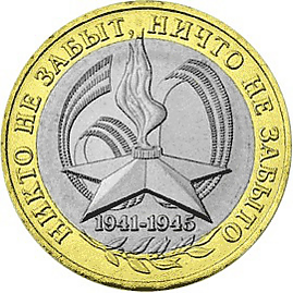 C 1992 по 2010 годы Банк России выпустил серию памятных монет из серебра, золота, латуни, стали, посвященную Великой Отечественной войне. Всего 48 монет.