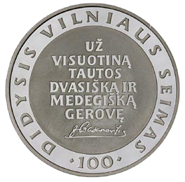 К 100-летию Великого Вильнюсского Сейма в 2005 году выпущена памятная монета в 50 литов. Автор графического проекта монеты является художник Альбертас Гурскас, автор гипсовых моделей — художник Ритас Йонас Белявичюс.[1]
