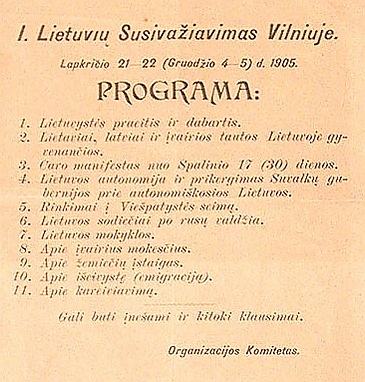 Организационный комитет 5 (18) ноября 1905 утвердил меморандум председателю Совета министров России графу С. Ю. Витте с требованием автономии Литвы. Меморандум был зарегистрирован 9 (22) ноября 1905 в канцелярии Совета министров.