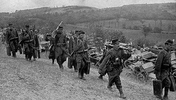 Под впечатлением победы в Пограничном сражении, а также продолжающегося отступления французских армий германское командование 27 августа отдает директиву своим войскам на преследование французских сил и дальнейшее наступление в основном в юго-западном направлении. 1-я германская армия получила задачу наступать западнее Уазы и Парижа на нижнюю Сену, 2-я армия — на Париж, 3-я армия — на Шато-Тьерри, 4-я — через Реймс на Эперне, 5-я армия — на линию Шалон-Сюр-Марн, Витри-ле-Франсуа, ей же поставлена задача окружить Верден, 6-я армия также получила активную задачу — наступать в общем направлении на Нёвшато.[1] Оперативный замысел этой директивы заключался в том, чтобы охватить оба фланга французской армии и таким путем уничтожить ее. При этом предусматривалось, что если французы окажут упорное сопротивление на реках Эне и Марне, то направление общего наступления германских армий будет изменено с юго-западного на южное.