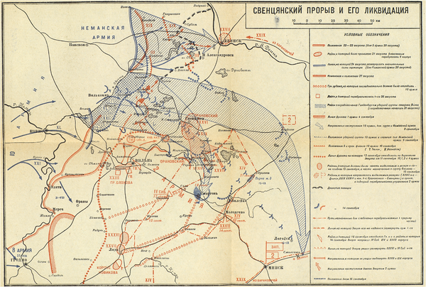 Овладев Ковно, немцы попытались взять Вильно. Но в упорных встречных боях у Вильно в конце августа-начале сентября германское наступление захлебнулось. Тогда немцы сосредоточили мощную группировку в районе Свенцян (севернее Вильно) и нанесли оттуда удар на Молодечно, пытаясь с севера выйти в тыл русских войск и захватить Минск. Из-за угрозы окружения русским 3 (16) сентября 1915 пришлось оставить Вильно. Однако к 19 сентября (2 октября) Свенцянский прорыв был ликвидирован.