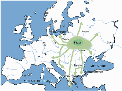- VII век. Славяне заняли земли к востоку от Эльбы при частичной ассимиляции германского населения[1]. Сербы и хорваты проникли на территорию современных Боснии и Далмации, они освоили значительные регионы Византии.