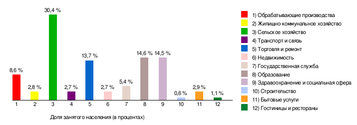 По переписи населения 2002 года в районе насчитывалось 452 сельских населённых пункта, из которых в 47 деревнях население отсутствовало, в 83 деревнях жило от 1 до 5 человек, в 76 — от 6 до 10 человек, в 102 — от 11 до 25 человек, в 54 — от 26 до 50 человек, в 38 — от 51 до 100 человек, в 28 — от 101 до 200 человек, в 15 — от 201 до 500 человек, в 6 — от 501 до 1000 человек, в 3 — от 1001 до 2000 человек[36].