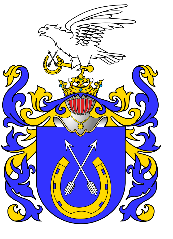 В подкове, как в щите так и в навершии шлема, две стрелы накрест, острием вверх. Герб Ястршембец 9 (употребляют: Велиновичи) внесен в Часть 2 Гербовника дворянских родов Царства Польского, стр. 194.