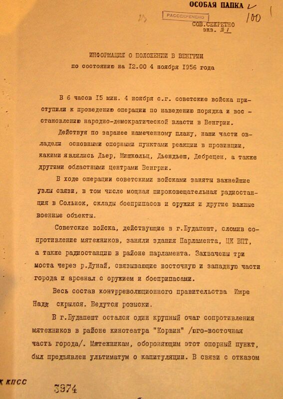 Пересмотреть оценку, войска не выводить из Венгрии и Будапешта и проявить инициативу в наведении порядка в Венгрии. Если мы уйдём из Венгрии, это подбодрит американцев, англичан и французов империалистов. Они поймут [это] как нашу слабость и будут наступать.