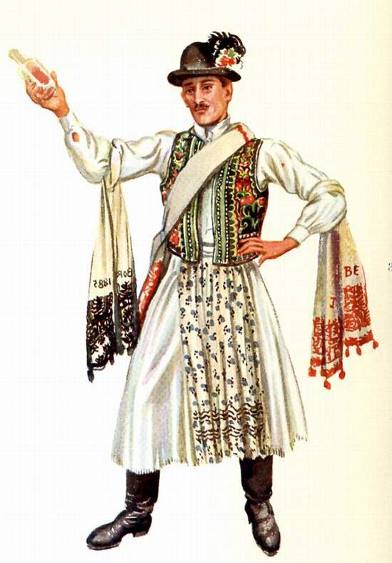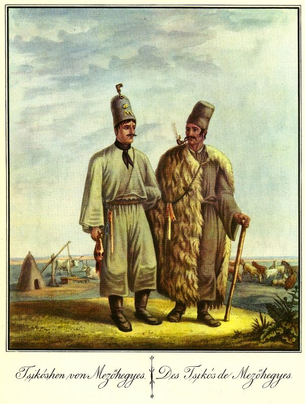 Традиционная одежда разнообразна. У женщин — сборчатая юбка, часто несколько юбок, короткая рубашка с широким рукавом, безрукавка, в обществе обязателен головной убор, чепец, платок. У мужчин — рубаха (на севере и западе страны — короткие, с длинными рукавами, на юге и востоке — длинные, до колен; позднее получили распространение рубахи ниже поясницы с широкими рубахами, поскольку в предплечье рукав собирался в складки), жилет и брюки (на западе были больше распространены узкие лосины, а на востоке — широкие белые штаны, отдалённо напоминающие юбку), меховая шапка, соломенная или фетровая шляпа. Характерно суконное пальто простого покроя губа (венг. guba) с длинными рукавами, которую носили, набросив на плечи; а на севере и северо-востоке — расшитый плащ сюр (венг. szűr) из белого сукна. Нередка суконная одежда обшивалась шнурами. На ногах носили поршни (венг. bocskor) и сапоги[29].