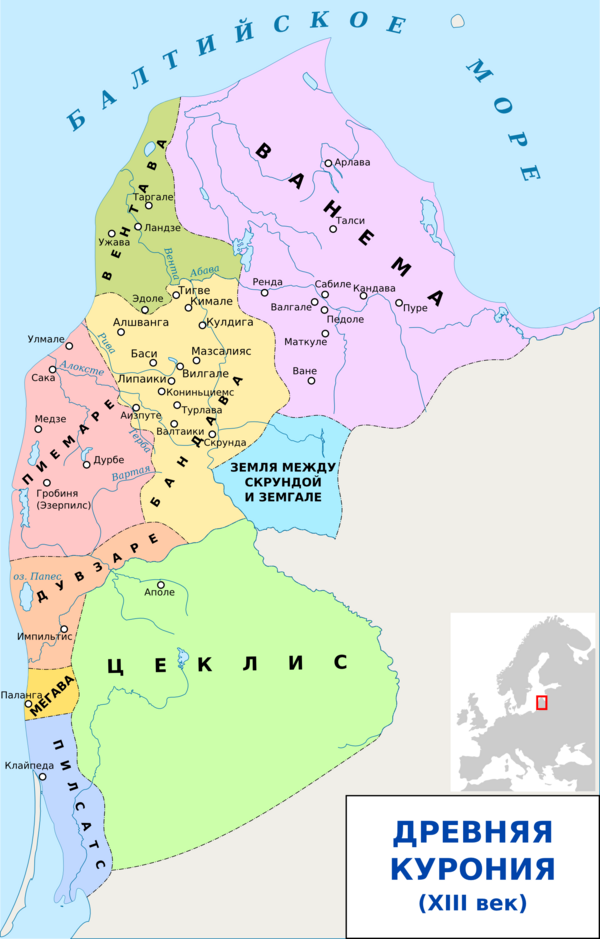 Изначальная родина вендов в низовье Венты находилась в составе Вентавы (Wynda, Winda) — древнего княжества Курсы. Вентаву как край Прибалтийских финно-угров можно проследить со времён Сарнатского поселения с около 2000 г. до н. э. (в Ужавской волости Вентспилсского края). Это одно из наилучше исследованных поселений культуры ямочно-гребенчатой керамики в Латвии. Благодаря благоприятным природным условиям, там сохранилась домашняя утварь, орудии труда и охоты, предметы религиозных культов, остатки жилищ. Полоса соприкосновения между этническими группами балтов и финно-угров проходила вдоль линии низовье Венты — Абава. В XI—XII веку Вентаву завоёвывают курши. Это соответствует сказанному в летописи, что из низовьев Венты вендов прогнали курши. Про последний известный Курский этнос — скандинавских торговцев и викингов свидетельствует как руны («рунический камень про Вентаву») и саги, так и археологические находки.