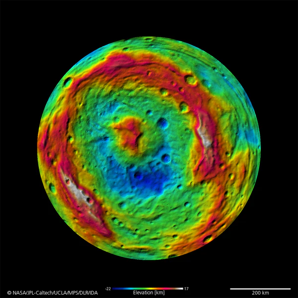 Кратер опоясывают борозды Сатурналии шириной около 40 км и длиной около 345 км[4].