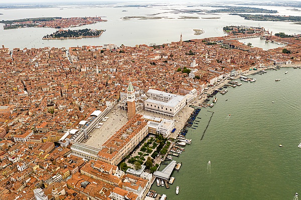 Островная Венеция — морской курорт, центр международного туризма мирового значения, место проведения международных кинофестивалей, художественных и архитектурных выставок. Внутригородские перевозки на моторных судах, гондолах, баржах. Поселение с V века, город с начала IX века. С IX—X по XVI век — крупный центр посреднической торговли между Западной Европой и Востоком. В Средние века и до 1797 года республика с дожем во главе (с конца XIII века — олигархическая), со значительной подвластной территорией. В 1797—1805 и 1815—1866 Венеция — владение Австрии. Вдоль каналов и узких кривых улиц располагаются богато декорированные церкви и дворцы. На центральной площади — Собор Святого Марка (IX—XV века), Дворец дожей (XIV—XVI веков), Старая библиотека Сан-Марко (XVI века), здания религиозных братств (скуол), монастыри. Город и лагуна включены в список Всемирного наследия.