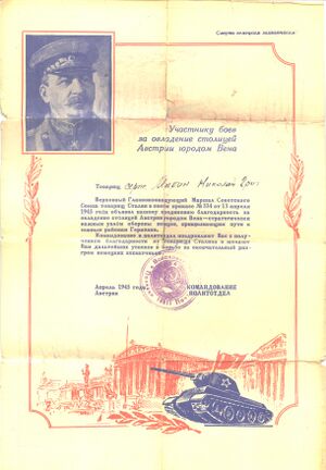 - ↑ С. П. Иванов. «За освобождение Венгрии и Австрии» в сборнике «9 Мая 1945 года» — М.: Наука, 1970.